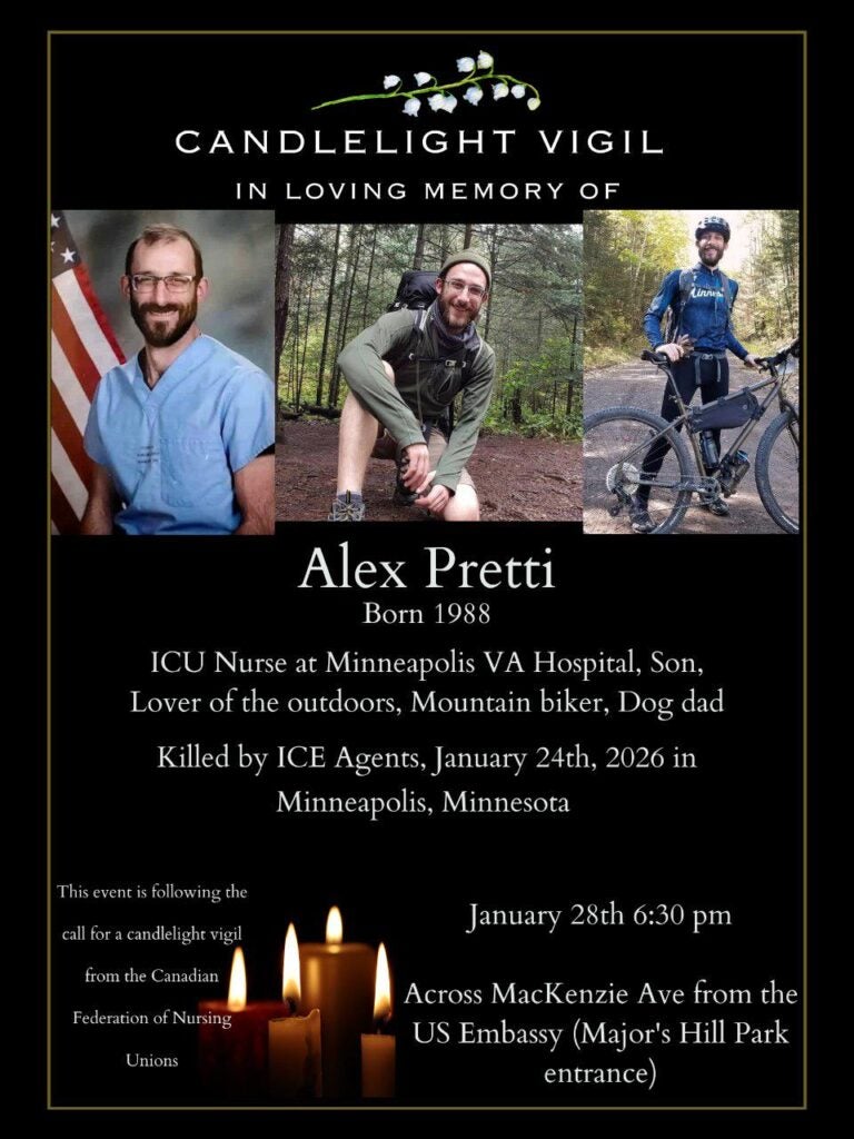 Local activists (including labour activists) are hosting a candlelight vigil for Alex Pretti, the details are below: